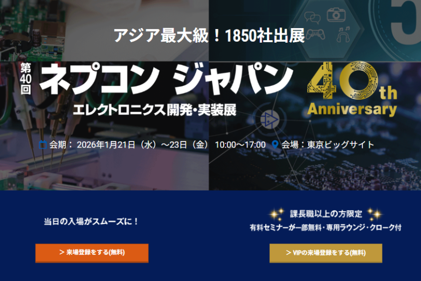 - 展示会名: 第40回 ネプコン ジャパン -エレクトロニクス開発・実装展-